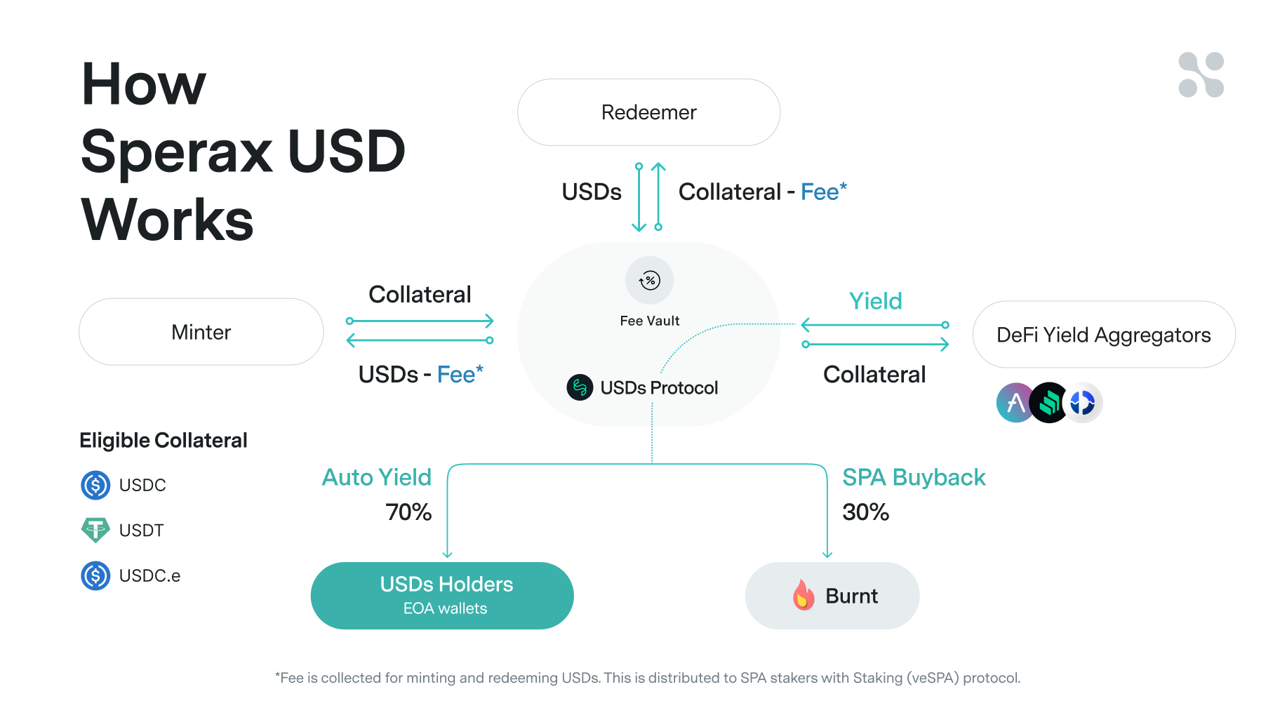 <figure><img src="https://1313079570-files.gitbook.io/~/files/v0/b/gitbook-x-prod.appspot.com/o/spaces%2F-MAO4g69-aVw4mnh3kXO%2Fuploads%2FtDLKPkEcYS9NoKKBUEFs%2F77491109.png?alt=media&#x26;token=3d567fc0-5455-45b2-9b4d-a35acb6eb999" alt=""><figcaption><p>How Sperax USD (USDs) Works</p></figcaption></figure>